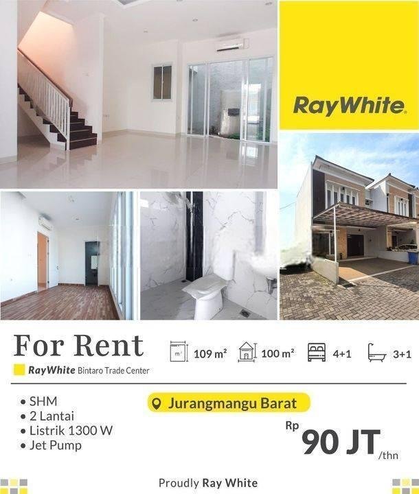 Disewakan rumah kondisi baru, belum pernah ditempati di area Bintaro, Pondok Aren.